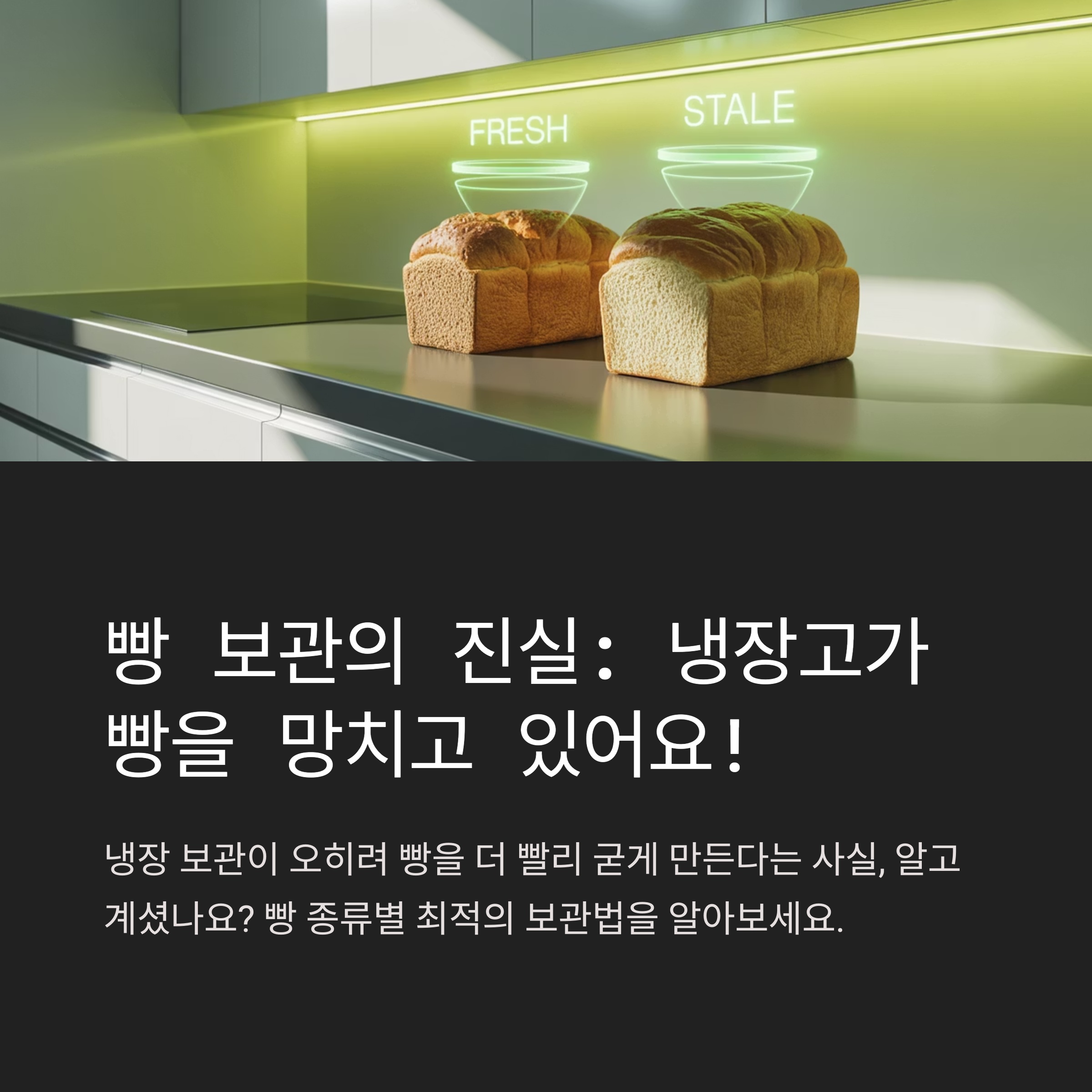 빵에는 상온 또는 냉동 보관이 훨씬 적합합니다.